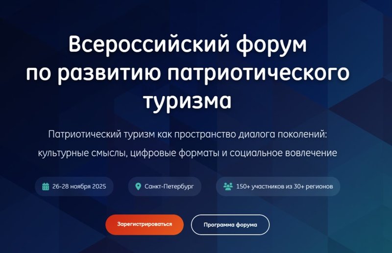 С 26 по 28 ноября 2025 года в Санкт‑Петербурге состоится Всероссийский форум по развитию патриотического туризма. Мероприятие соберет более 150 специалистов из 30 регионов России для выработки практических решений по развитию одного из самых актуальных направлений внутреннего туризма.